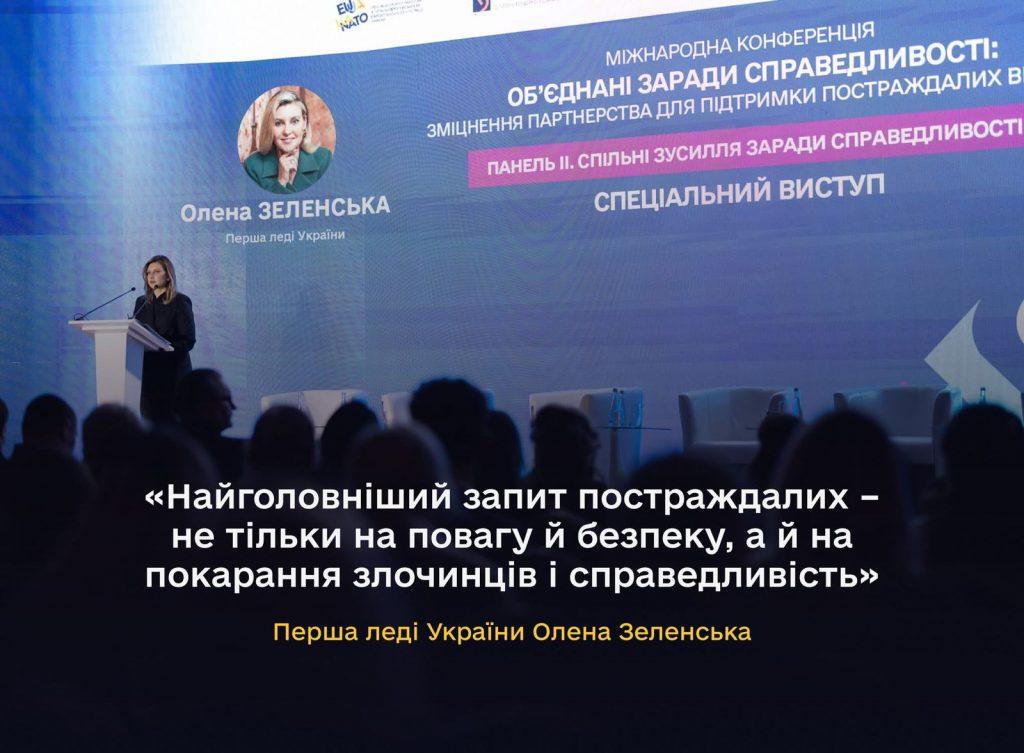 Перша леді України Олена Зеленська наголосила: Найголовніший запит постраждалих – не тільки на повагу й безпеку, а й на покарання злочинців і справедливість»